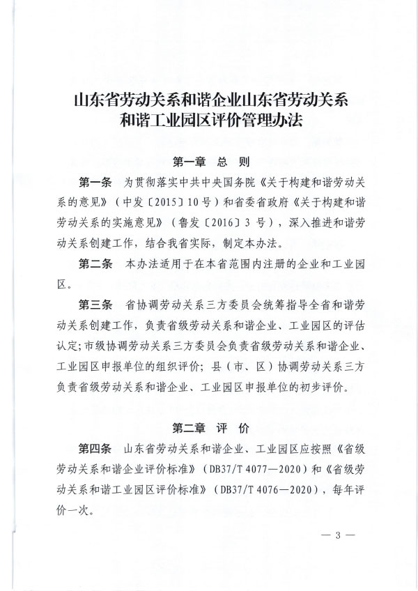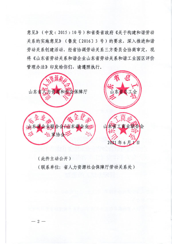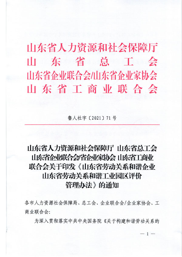 关于印发《山东省劳动关系和谐企业山东省劳动关系和谐工业园区评价管理办法》的通知
